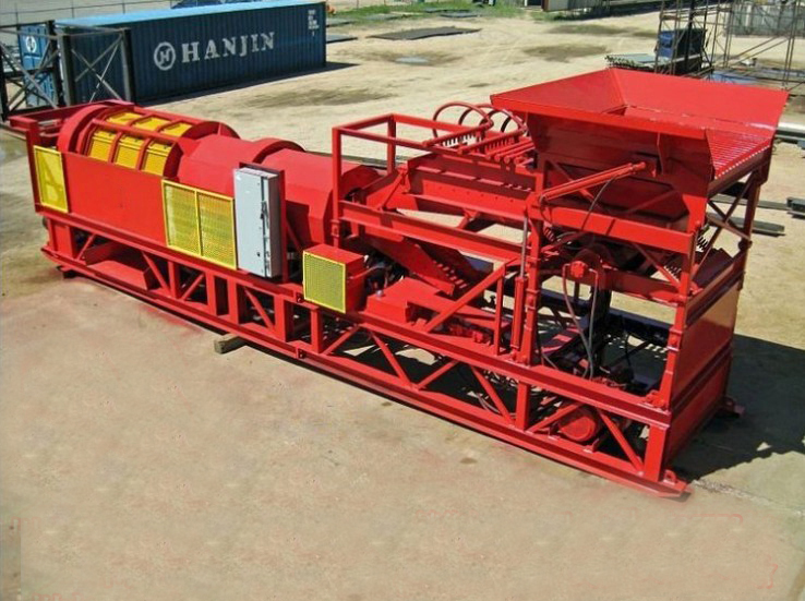 可采用挖掘機、鏟車、輸送機上料,也可定制為沙泵或翻斗車上料的專用料斗,料斗可配套格篩,將大石塊廢料隔出,以免對篩造成傷害,料斗可配套振動給料機,使礦料在進入滾筒式更加均勻,不間斷。