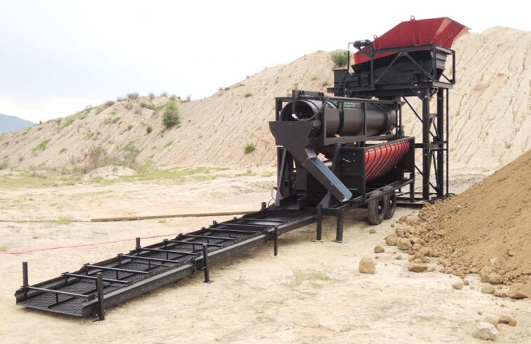 可采用挖掘機、鏟車、輸送機上料、也可定制為沙泵或翻斗車上料的料斗。料斗可配套格篩,將大石塊廢料隔出,以免對篩造成傷害。料斗可配套振動給料機、使礦料在進入滾筒式均勻、不間斷。小型淘金設備