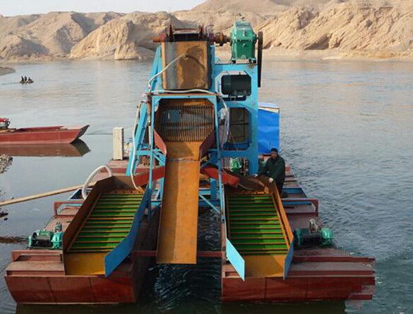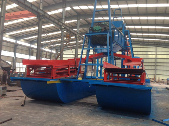 溜槽淘金船是目前使用率比較廣的淘金船,溜槽可以有幾種選擇比如:蠕動溜槽、鼓動溜槽、振動溜槽、循環(huán)溜槽、固定溜槽等。可以根據(jù)黃金形態(tài)進(jìn)行配套。淘金船的產(chǎn)量和回收率可以根據(jù)客戶的要求定制。