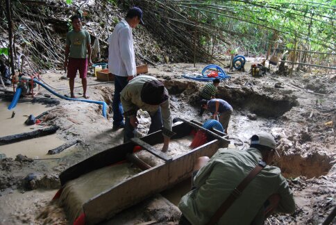 以下是劉總發來當時人在開采沙金礦,和比較原始回收率低的簡易工具: