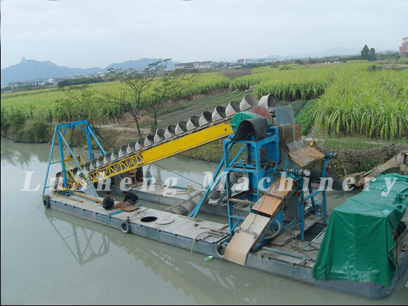 淘金船是水下河道沙金礦開(kāi)采的選擇,是所有的河道沙金礦都采用采金船進(jìn)行開(kāi)采,這種采金船有多種功能。采金船可以完成以下沙金礦的回收作用。