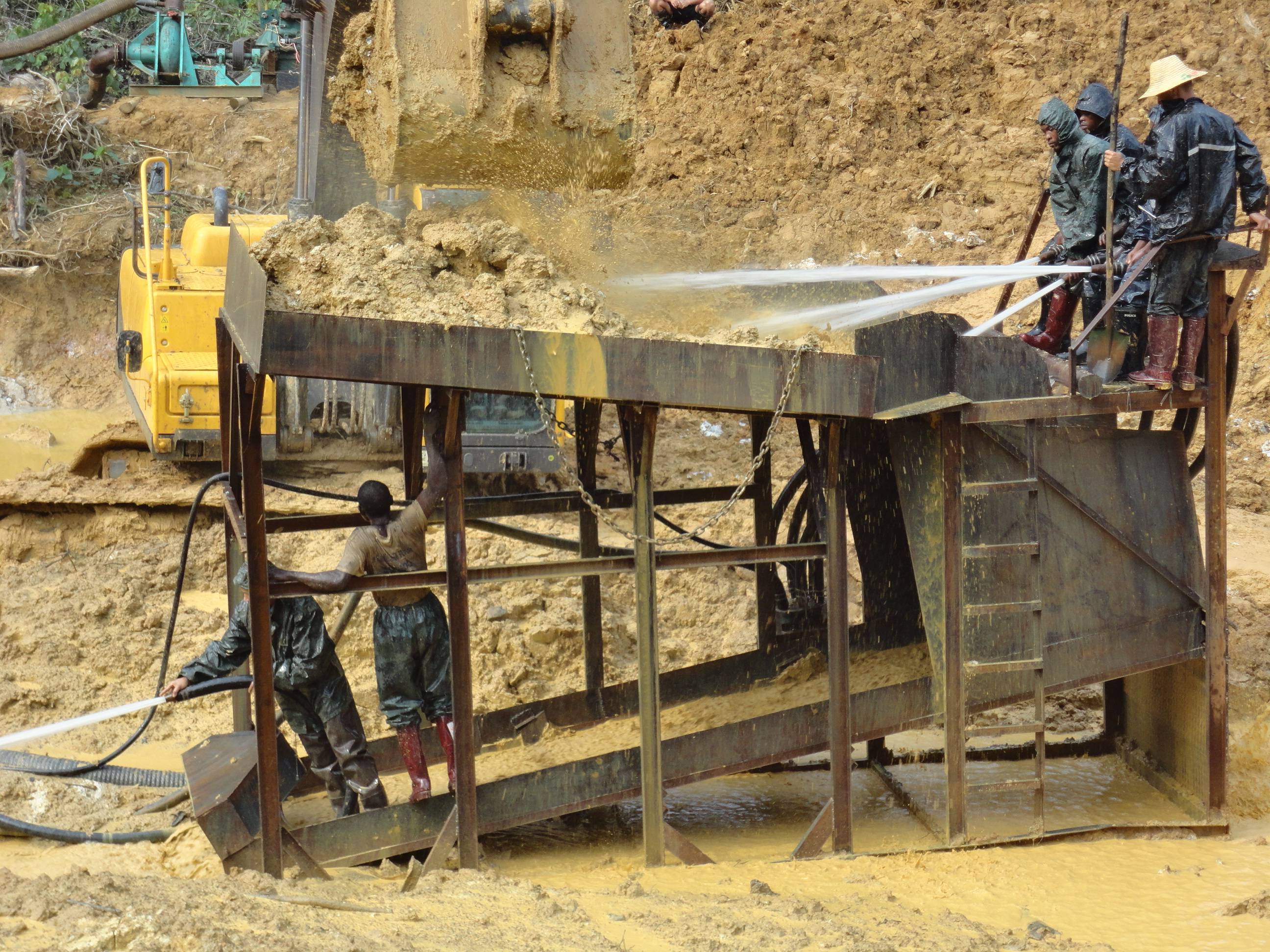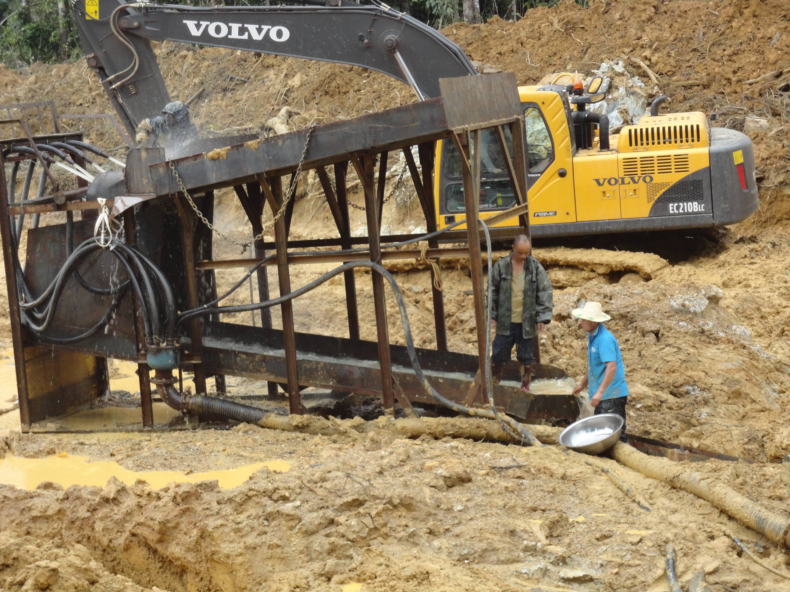 杭州的陳總在幾內亞進行沙金礦的開采,使用的是原始的大溜槽,這種大溜槽產量小,洗礦效果不好,需要人工手持水槍沖洗,沒有絞泥的效果,另外黃金回收也是固定溜槽,回收率低,尾礦當中還有3克含量。所以陳總直接來到魯晟機械考察移動式新型的旱地沙金設備。這種新型的是一體式的,移動非常方便,配套新型防盜的選金系統,回收率高。不光能回收顆粒金,還可以回收毛細金,片金,等微粒金,目前這款設備很受客戶的歡迎。